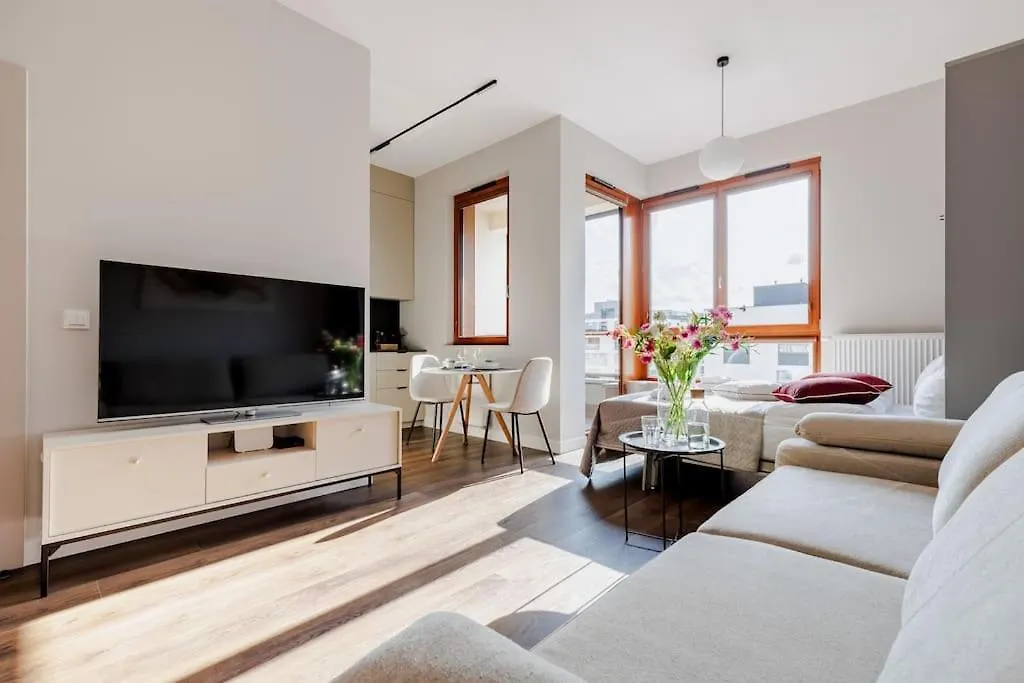 Cozy Studio In The Business Center Apartment is situated just 6 minutes on foot from Parafia Matki Bozej Anielskiej na Wierzbnie and 10 km from Warsaw Frederic Chopin airport. Guests can make use of Wi-Fi for both business and leisure purposes.